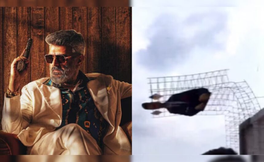 A towering cut-out of actor Ajith Kumar, reportedly stretching over 285 feet, collapsed at the PSS Multiplex in Tirunelveli, Tamil Nadu.