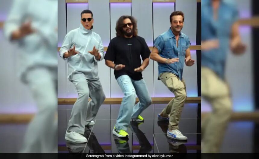 Akshay Kumar, Fardeen Khan and Riteish Deshmukh made a super fun reel Khel Khel Mein (pun intended). Akshay Kumar and Fardeen Khan danced their hearts out to the track Hauli Hauli from their upcoming film Khel Khel Mein and guess who joined the duo? None other than Riteish Deshmukh. The video posted by Akshay Kumar features his Heyy Babyy co-stars dancing to their eponymous song. They put their best dancing foot forward as they did the hookstep of Hauli Hauli.