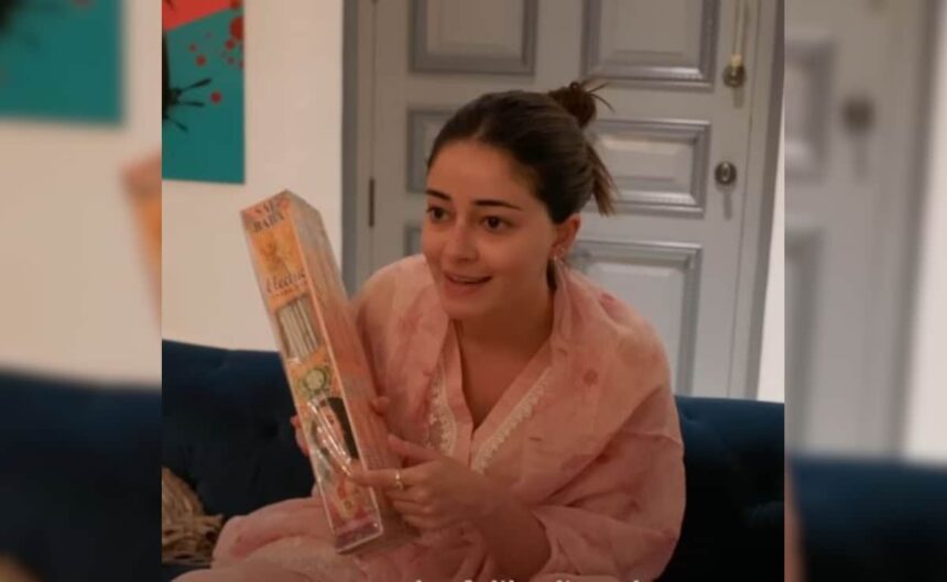 Ananya is seen sitting in their living room in a pink salwar suit when Alanna brings the packet to her. On seeing it, Ananya exclaims, “I’m on the fuljhadi… That’s my dream,” wide-eyed with happiness. The Call Me Bae actress then asks her cousin if she is actually on the box or if it is customised by the cousins.