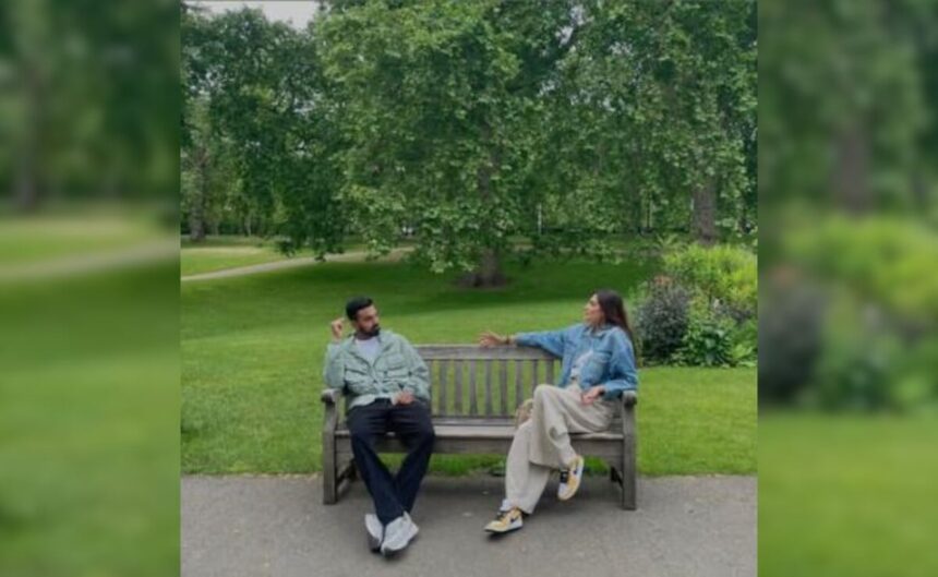 In the snap posted by the actress in her stories, the parents-to-be are seen sitting on opposite sides of a bench. The lush green backdrop in the image looks stunning.