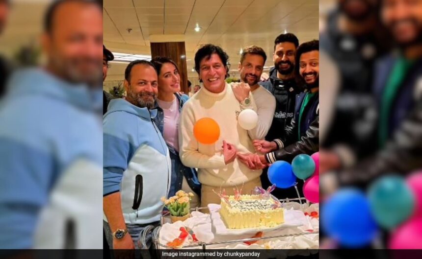Chunky Panday turned 62 on Thursday (September 26). The actor, who is currently busy shooting for Housefull 5 in Spain, rang in his birthday with his co-actors and the rest of the cast. Chunky Panday shared a glimpse of his birthday celebrations on Instagram. The montage video began with a group picture featuring Nargis Fakhri, Fardeen Khan, Abhishek Bachchan, Riteish Deshmukh and of course the birthday boy. The clip then moves onto the cake-cutting ceremony, in which Riteish seems to be hiding behind Chunky Panday as he cuts the cake. Riteish goes on to stuff Chunky’s mouth with the sweet treat. Then, there is a glimpse of Dino Morea hugging Chunky Panday. Next, there are images of Abhishek and Nargis feeding him some cake. As the film is being shot on a cruise ship, Chunky Panday‘s caption read, “A Birthday at Sea. The night of the 26th, guess who cut the cake and fed my face.” Reacting to his post, his wife Bhavna Panday dropped red heart emojis in the comment section. His sister-in-law Deanne Panday also shared some red hearts.