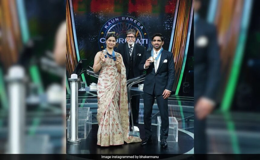 Kaun Banega Crorepati (KBC), hosted by megastar Amitabh Bachchan, featured two Indian Olympic medallists — Manu Bhaker and Aman Sehrawat – on Thursday (September 5). The special episode was titled Jeet Ka Jashn. Manu Bhaker has shared her experience by dropping a picture on Instagram. The photo shows Manu sharing the stage with Amitabh Bachchan and her fellow Olympian Aman Sehrawat. Dressed in a saree, she proudly flaunted her medal. Aman also displayed a similar pose with Big B in the middle. The three of them smiled beamingly at the camera. “Unique fair of laughter and knowledge with Aman and Amit Sir on KBC show,” read her caption. At the 2024 Paris Olympics, Manu Bhaker won two bronze medals in shooting and wrestler Aman Sehrawat bagged a bronze medal.