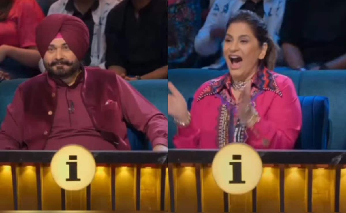 To this, Navjot Singh Sidhu responds, “Abey oye! Dhyaan se dekh. [Hey! Look closely. ] Knock-knock! Who is there? Sikh Sidhu.” Archana Puran Singh, visibly uneasy, nudges Kapil Sharma and says, “Kapil, tu sardar sahab se bol de, vo meri kursi se uth jaaye. Kabza kar ke baith gaye hain. [Kapil, tell sardar sahab to get up from my chair. He has taken over my seat]”