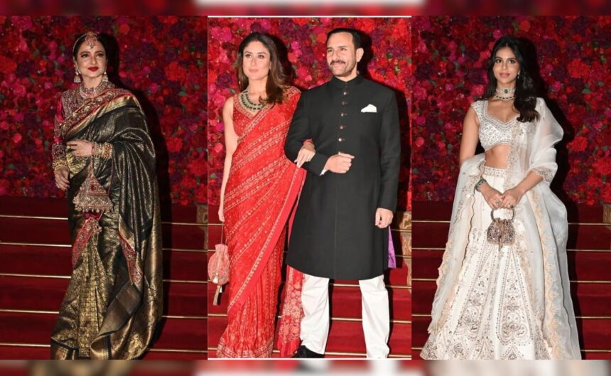 Adding to the glamour were Alia Bhatt, Rekha, Saif Ali Khan, Ananya Panday, Suhana Khan and many more. Let us take a look at all the Bollywood celebs who graced this big fat Indian wedding of Aadar Jain and Alekha Advani: