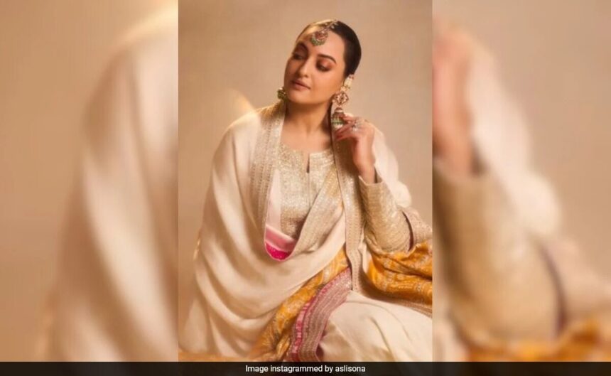 Sonakshi Sinha married her longtime boyfriend and actor Zaheer Iqbal last month. Recently, the actress shared a series of pictures from her bachelorette party. The theme of her party was “Sonamandi” (inspired by the actress’ show Heeramandi). Sonakshi looked pretty in a full-sleeved white anarkali suit featuring intricate golden detailing from the shelves of Faabiiana. She completed her look with a multi-colour dupatta and juttis.