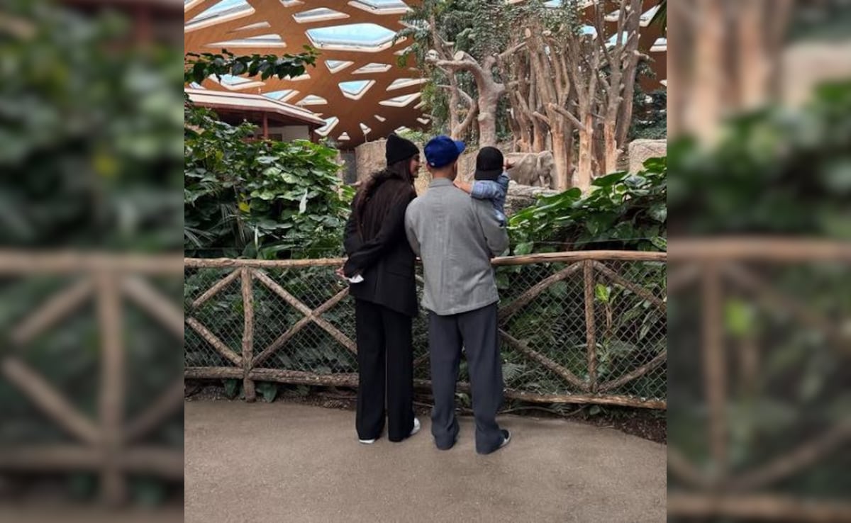 In the pictures, the couple, along with their son Vayu, can be seen enjoying a visit to a zoo in Zurich. The first few images show the family of three admiring an elephant at the zoo.