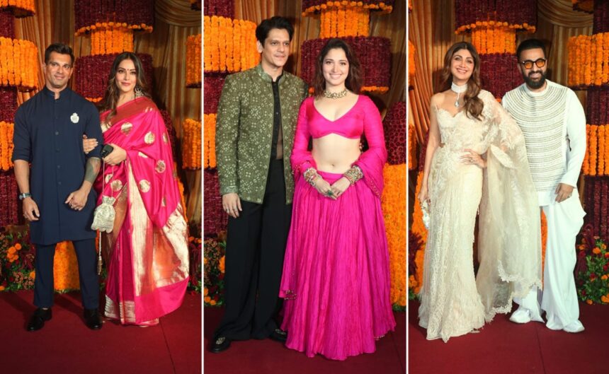 Diwali festivities have kicked in Bollywood. On Saturday night, producer Ramesh Taurani hosted his annual Diwali party in Mumbai. Vijay Varma-Tamannaah, Shilpa Shetty-Raj Kundra, Bipasha Basu-Karan Singh Grover attended the starry party in style. Saif Ali Khan sans Kareena Kapoor, Sidharth Malhotra sans Kiara Advani also marked their presence at the party. Mrunal Thakur, Rasha Thadani, Kapil Sharma, Raashii Khanna, Arpita Khan and Aayush Sharma also attended the party. Among the guests, Tamannaah and Vijay Varma stole the limelight. Tamannaah painted the town pink and how. She grabbed the spotlight with her infectious smile. Vijay Varma complemented her in a traditional suit. The couple gave the paparazzi a picture-perfect moment to capture. They also posed for a grand selfie with the paparazzi stationed over there. Take a look: